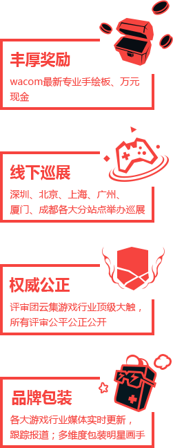 2017“艺行者”腾讯GAD游戏美术大赛是由腾讯GAD主办,腾讯互娱光子美术中心与全球顶尖的用户界面产品生产商Wacom共同承办的游戏美术作品大赛活动,本次活动面向所有的游戏美术从业者以及在校大学生,旨在为参赛者搭建一个艺术学习和成长的交流平台,打造游戏美术专业顶尖赛事。